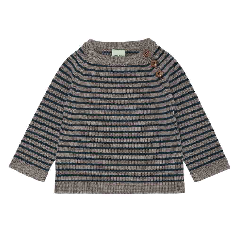 Knitted in a clean single jersey this long-sleeved sweater is a FUB classic. It has a straight loose fit, raglan sleeves and clean folded hems. It features a round ribbed neckline, button closure at shoulder with wooden buttons and handmade button loops. This sweater is designed with a spacious shape and is suitable for layering or to be worn on its own. It is knitted in a classic yarn-dyed stripe and made from pure merino wool.