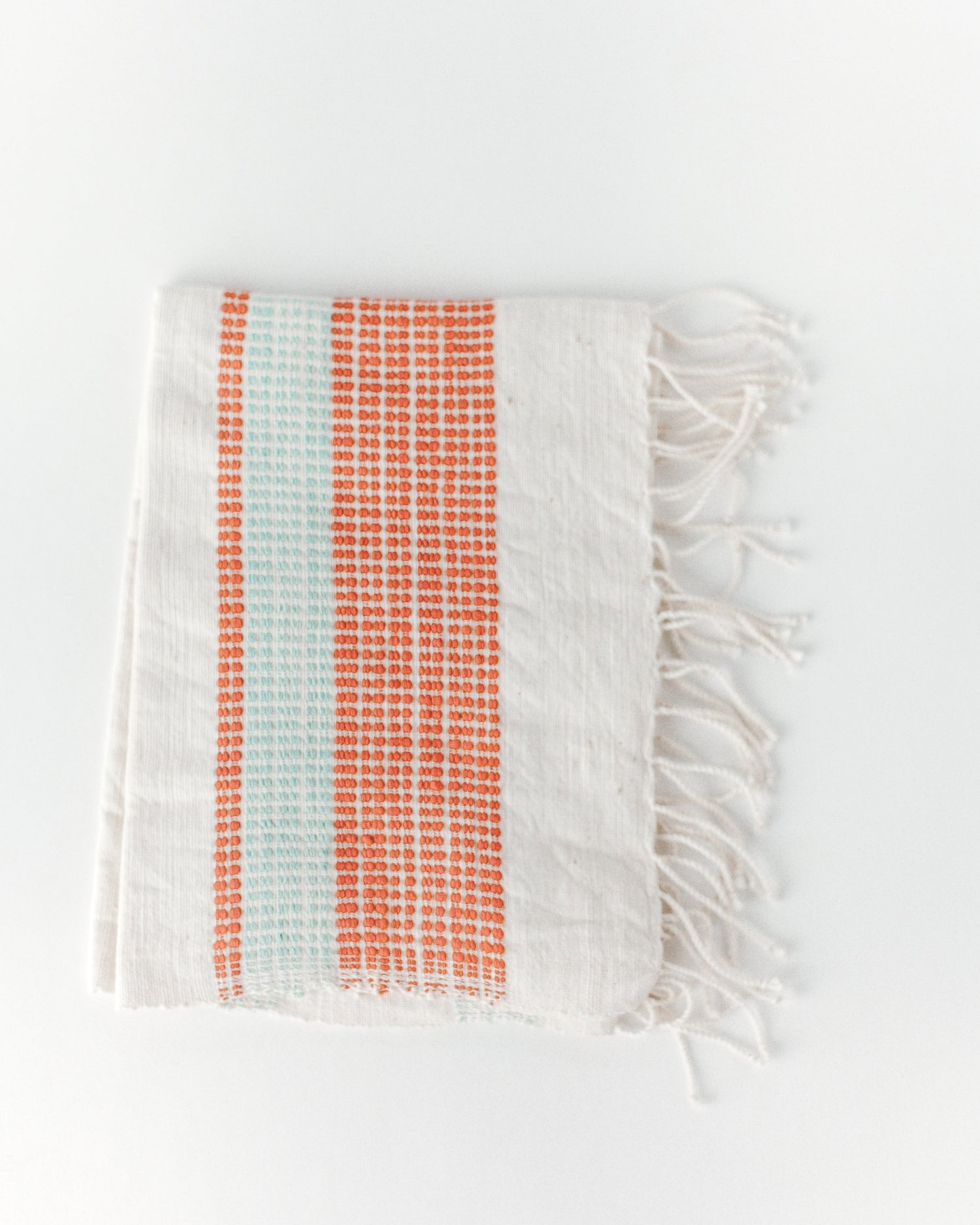 Each towel is hand-woven in Ethiopia using time-honored weaving traditions and AZO-free dyes. Hand-spun Ethiopian cotton adds a uniquely rich texture that will continue to soften and become more absorbent with each wash/dry. Yes, they're machine washable!