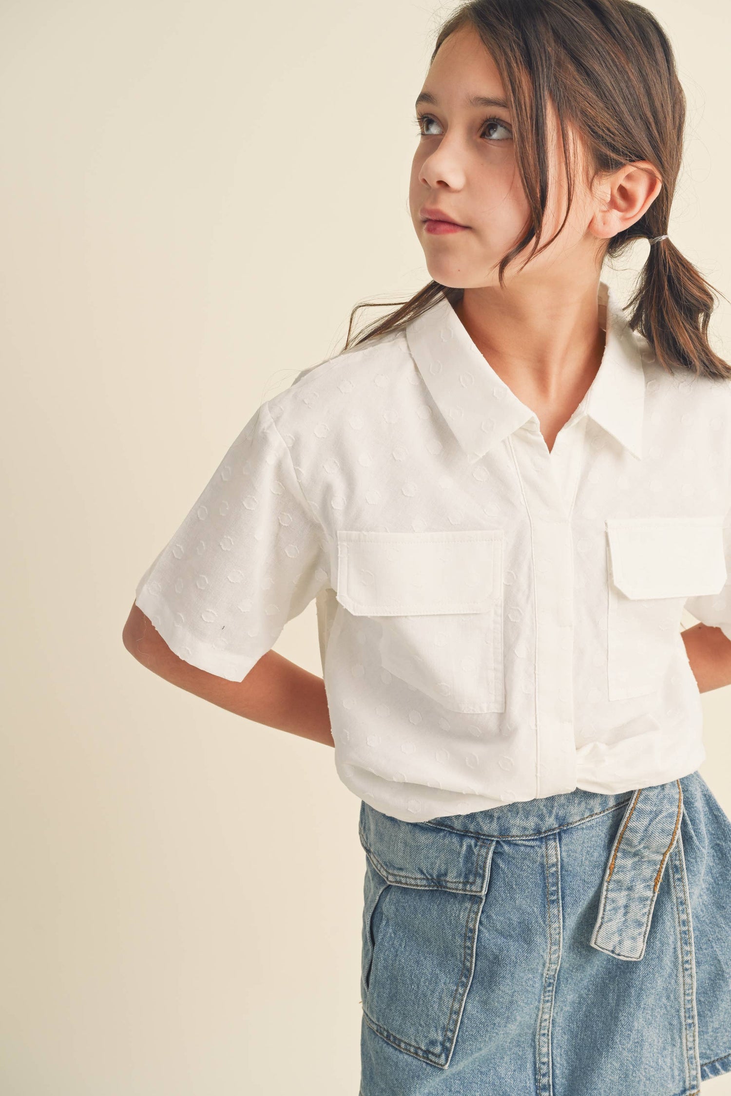 heart and arrow - KIDS DROP SHOULDER S/S BUTTONLESS TOP KT2413CN (7-14 S-L): MEDIUM / IVORY