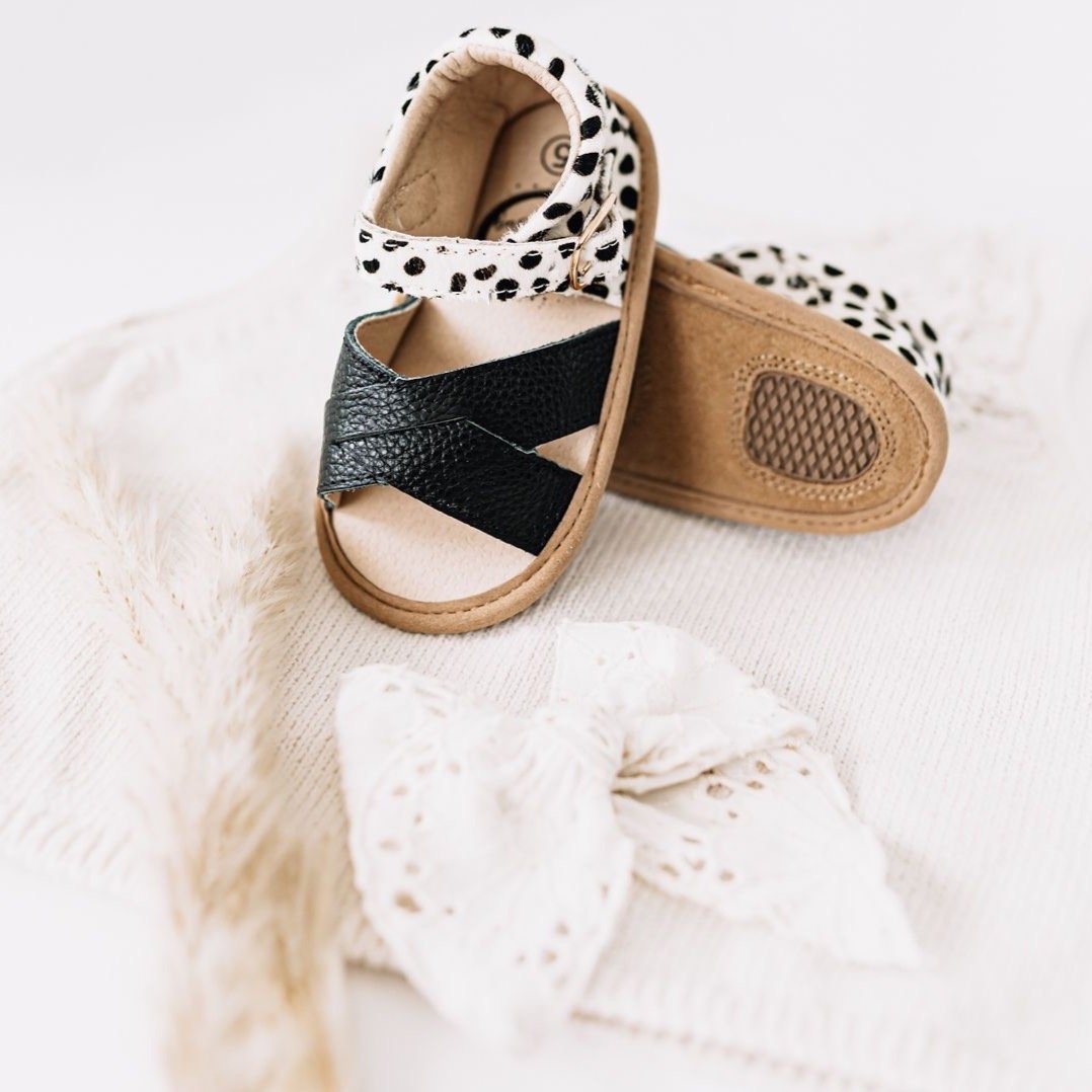 * Elastic entrance, as well as an adjustable buckle for skinny to chunky feet * 100% genuine leather, so there’s no sweaty overheated feet * Practical for children, toddlers, babies, and infants for a day of play. * Easily dressed up for an event such as a wedding, baby shower, birthday party or family photography.