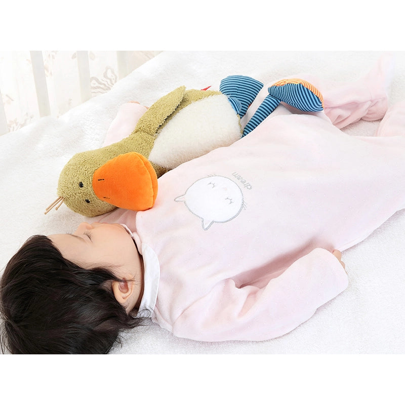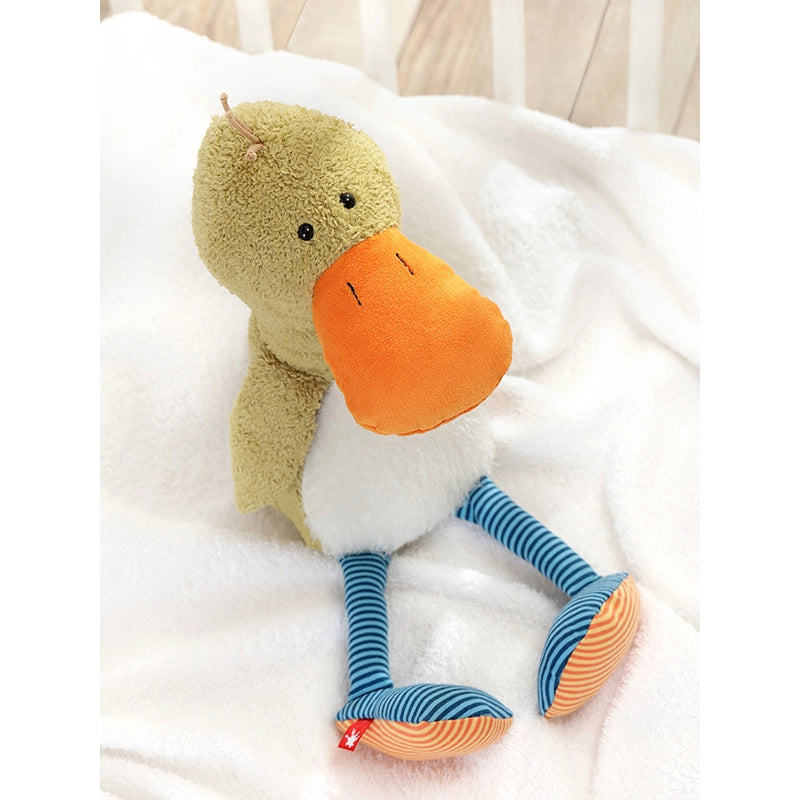 Sandra Boynton is one of the most successful children’s book writers and illustrators worldwide. More than 60 million copies of her books have been sold. Sandra Boynton just launched a new book, called “Silly Lullaby”. It is the story of a little bear who is always with his plush duck, especially when he is ready for bed. This cute duck with her three strands of hair on her head is exclusively designed by Sandra Boynton for sigikid! The duck is the perfect cuddle companion and ideal to fall asleep with: she has the right size for little hands to hold her tight, her legs dangle freely and her soft belly invites you to dream. Her mischievous eyes leave no doubt that she is ready for every adventure during the day. Sandra Boynton’s duck resides within sigikid’s Patchwork Sweety Collection where she has already made lots of friends. Size: 15.4" Age: Newborn and up