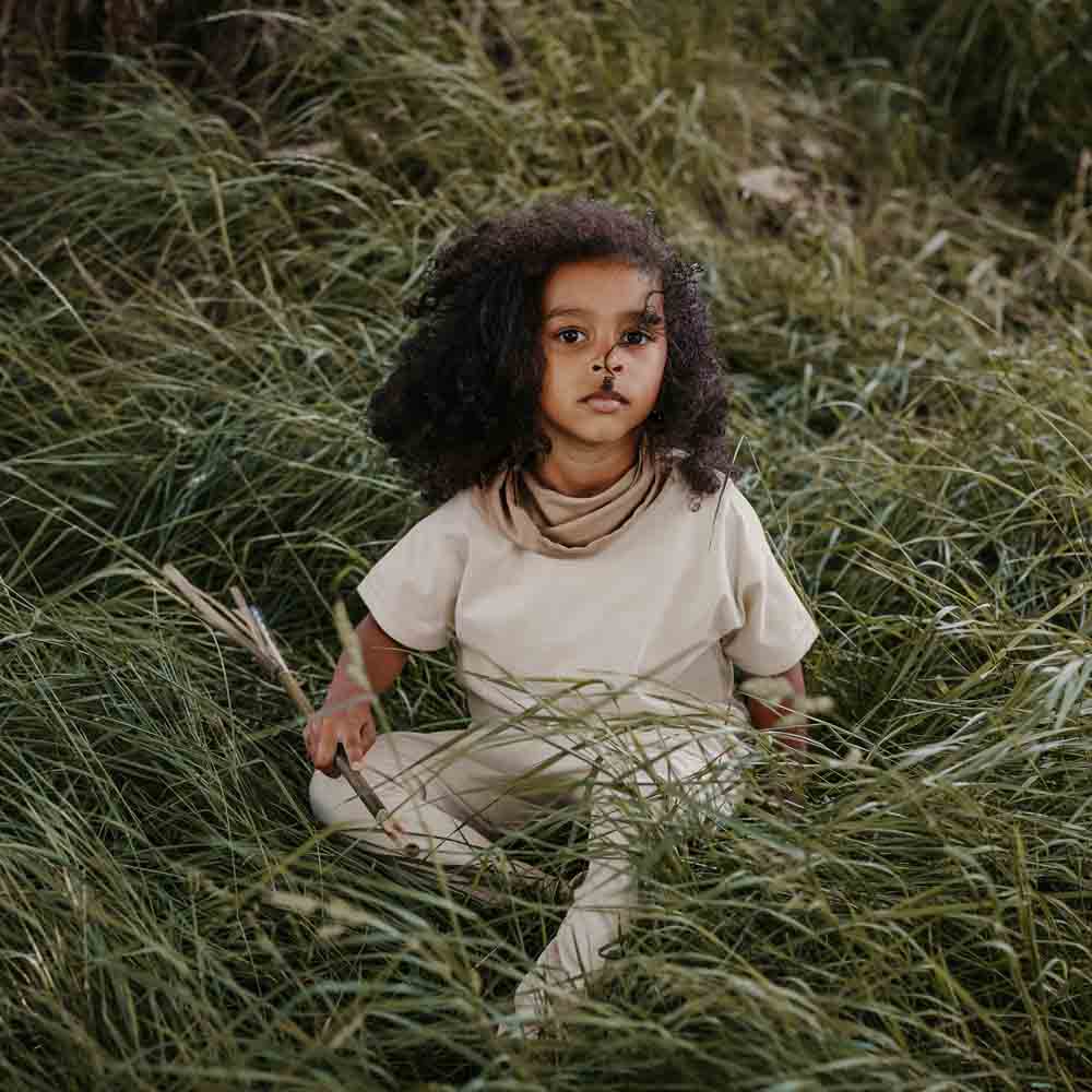 Designed with play, movement, and comfort in mind, our oversized, boxy tee features relaxed sleeves, snaps on one shoulder for easy on and off, and is made with luxuriously soft organic cotton.