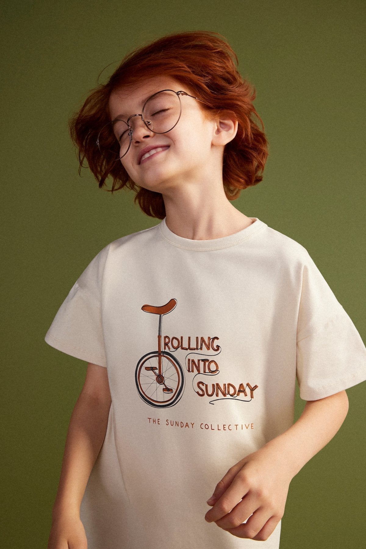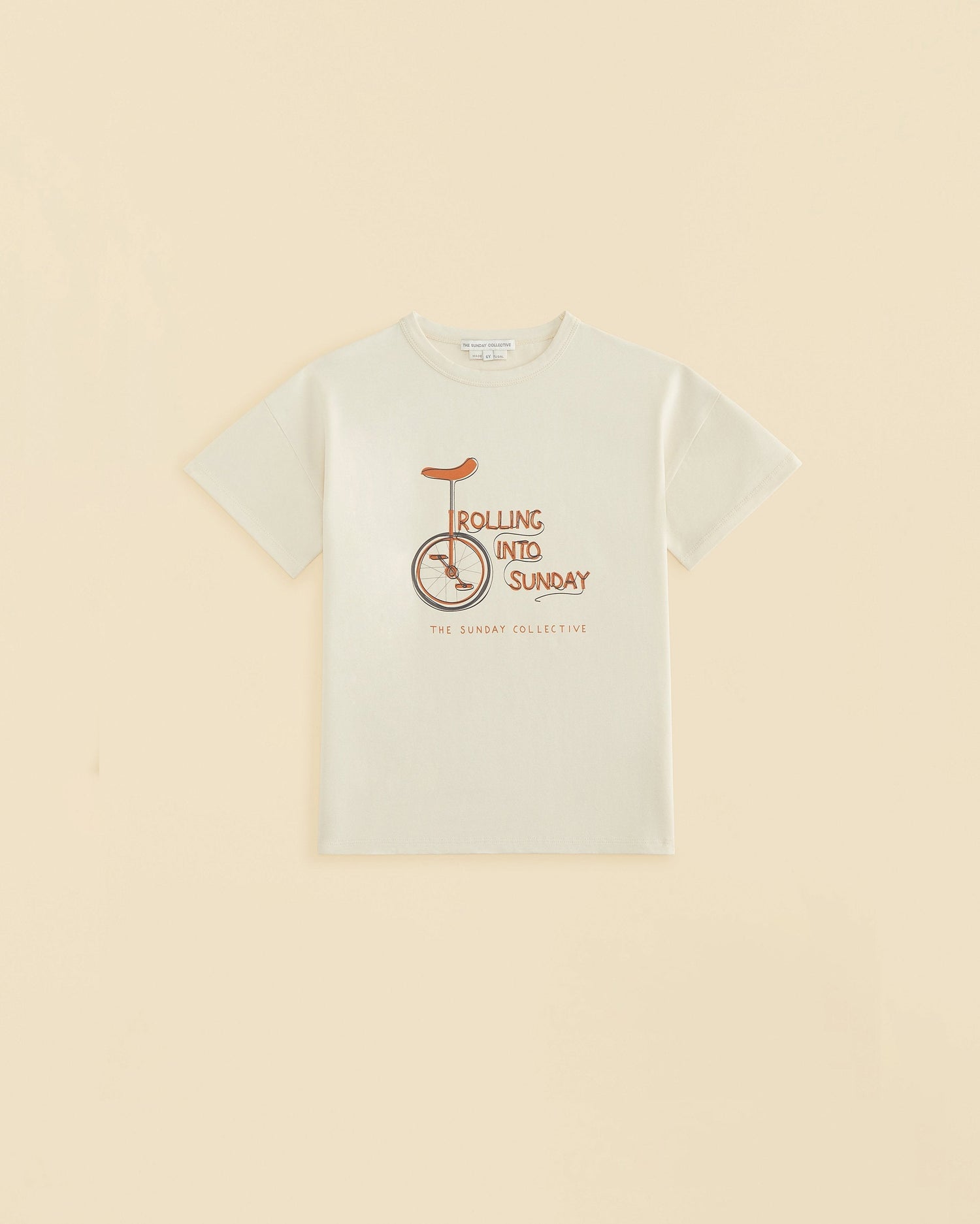 Introducing our organic cotton drop-sleeve tee in the perfect back-to-school color - Almond Milk.