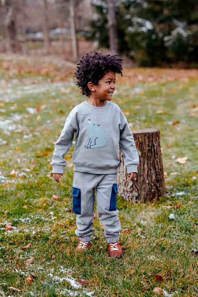 Our sweatshirts are extremely soft and comfortable, made sustainable in Portugal from 55% industrial recycled cotton (R-CO) and 45 % recycled polyester from up-cycled plastic bottles (R-PET). Our woven labels are made of 100% Recycled Polyester from up-cycled plastic bottles. Our drawstrings are made in organic cotton, and our prints are water color based, using non-toxic ink.