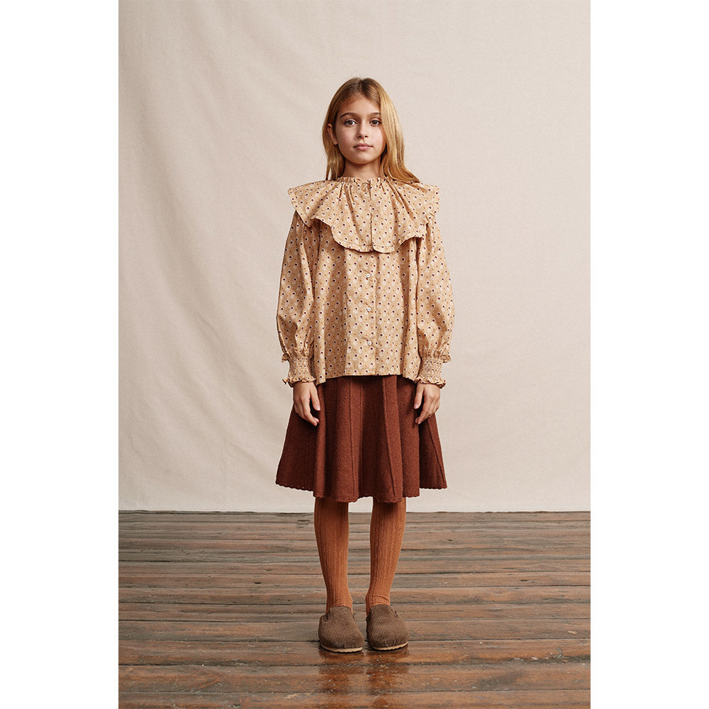 Adorable Yoco blouse crafted from softest lightweight cotton in romantic ditsy floral print. Features elegant smocked long sleeves and loose silhouette featuring voluminous collar with ruffle detailing. Perfect for special events or family pictures but comfortable enough for everyday adventures! Composition: 100% cotton. Take care: Machine wash 30°C, tumble dry low, iron when little wet. Do not bleach or use oxidizing agents. Please use environmentally friendly detergents.